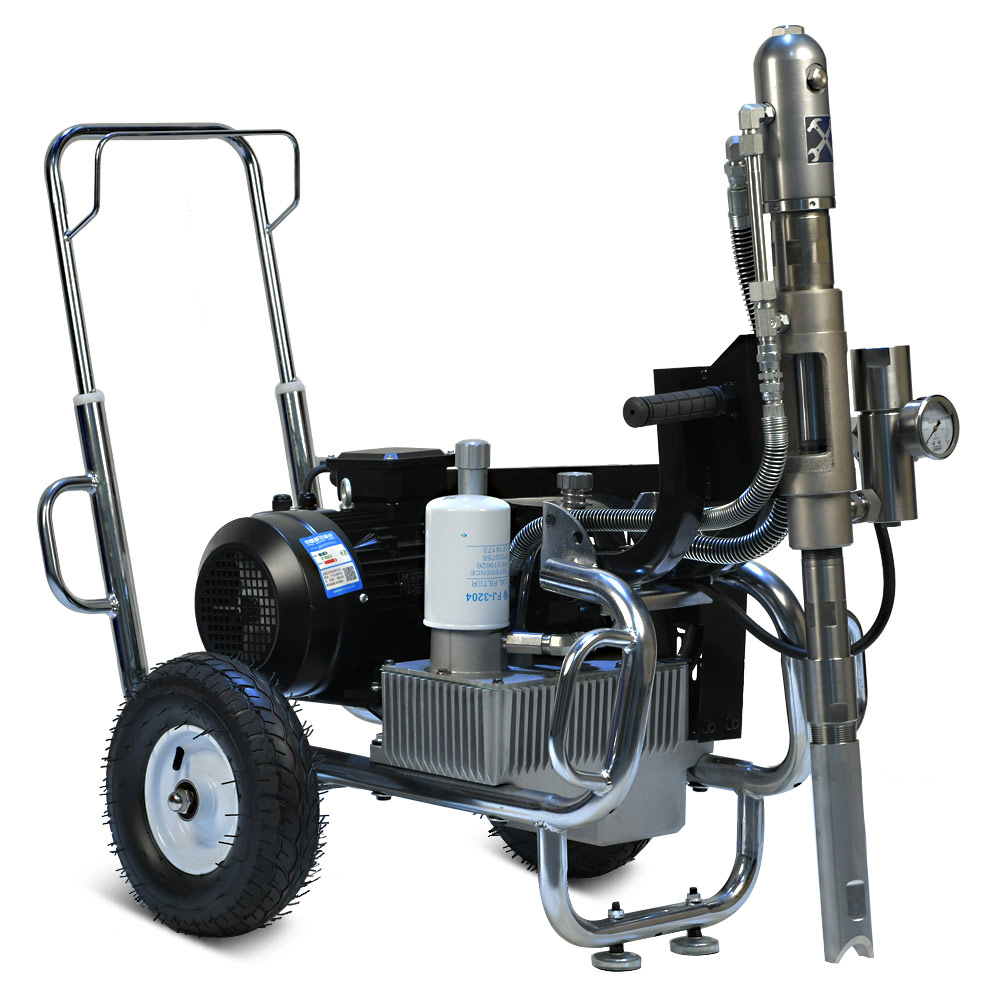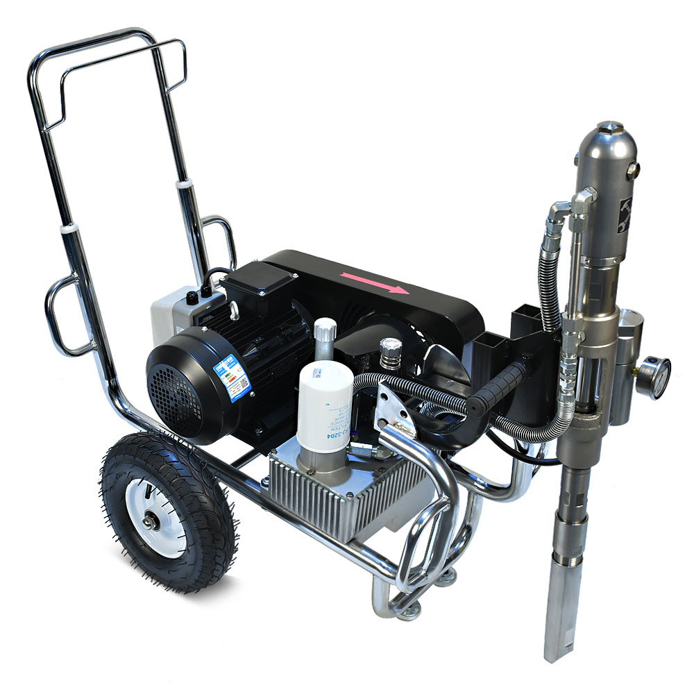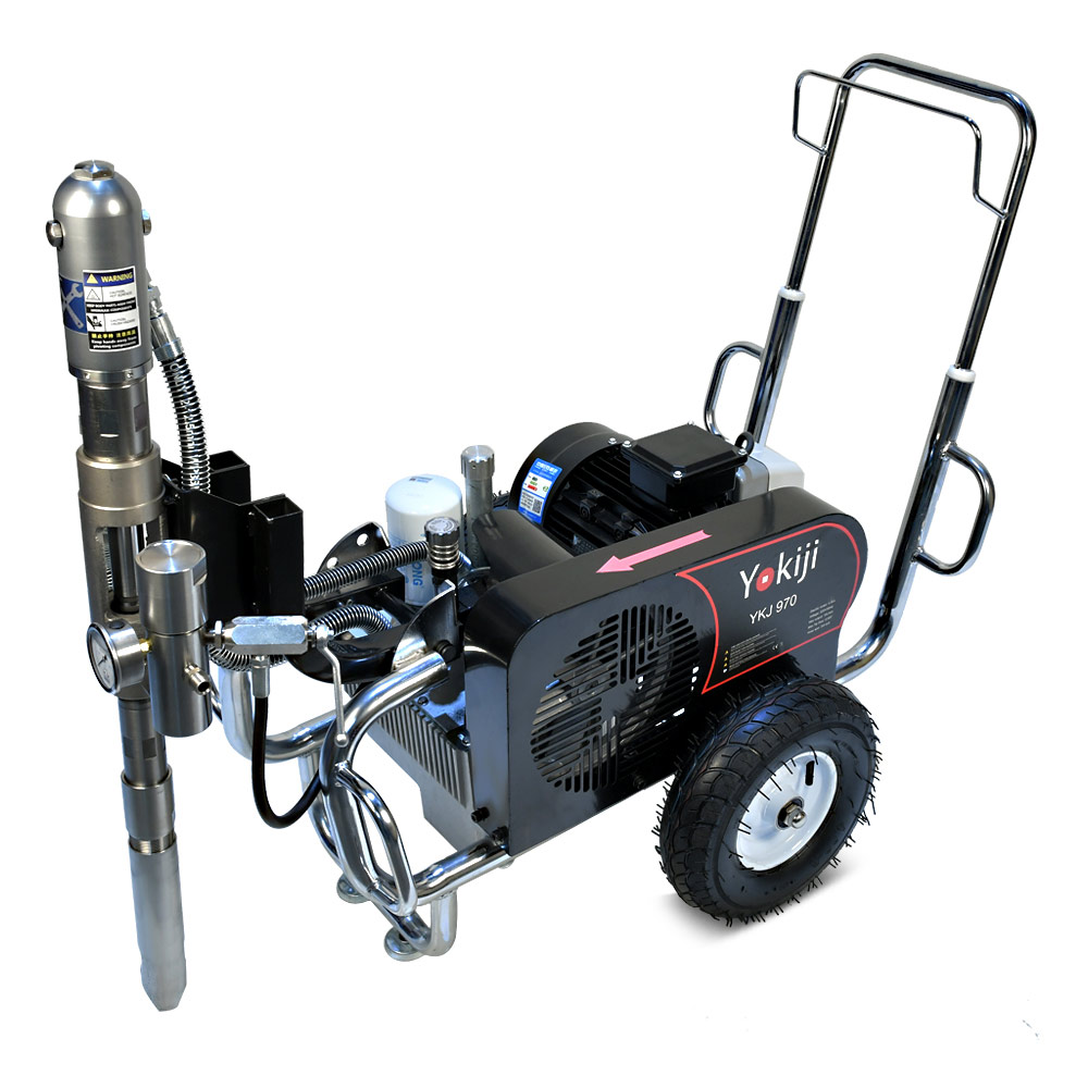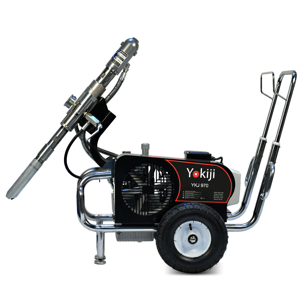 YOKIJI YKJ 970 – гидропоршневой безвоздушный электрический окрасочный аппарат. Он может применяться для распыления материалов с высокой, средней и низкой вязкости: красок, эмалей, шпаклевок, огнезащитных, гидроизоляционных, антикоррозийных и цинконаполненных составов, мастик, грунтовок. Аппарат используется на стройплощадка при отделке помещений, зданий и сооружений, а также на производствах при покраске больших конструкций. Модель работает от розетки 220B и обладает высокой производительностью (10 л/мин); позволяет присоединять до 3 малярных постов и подавать материал на высоту до 90 метров.