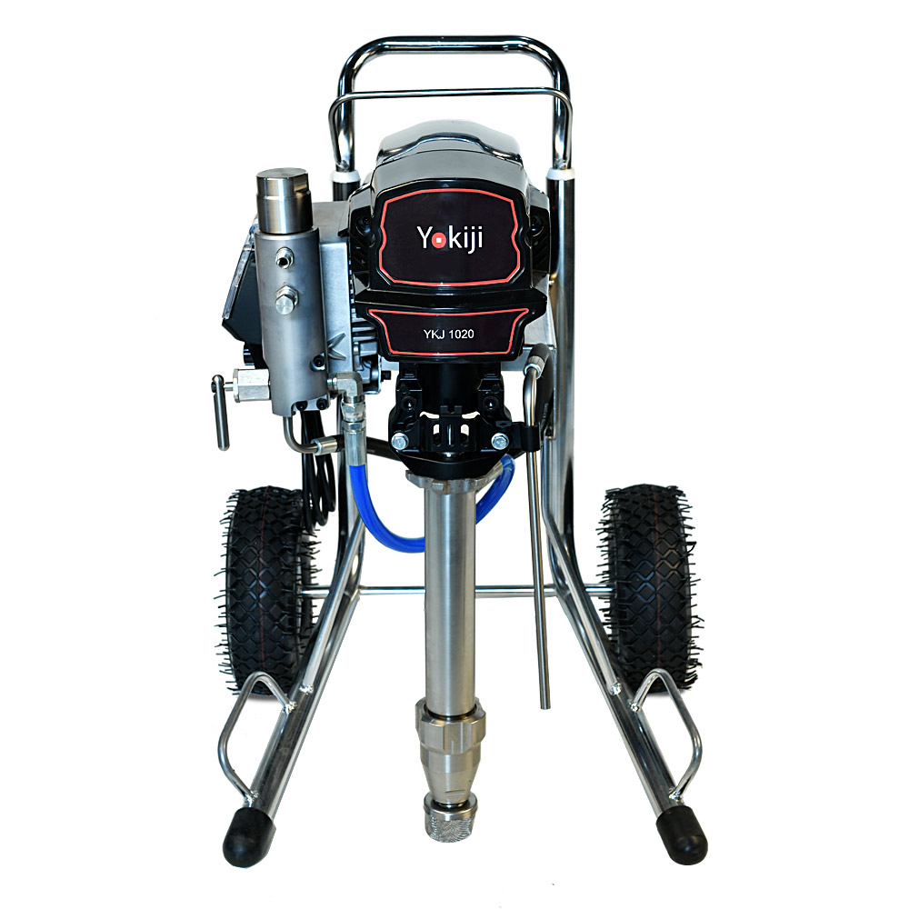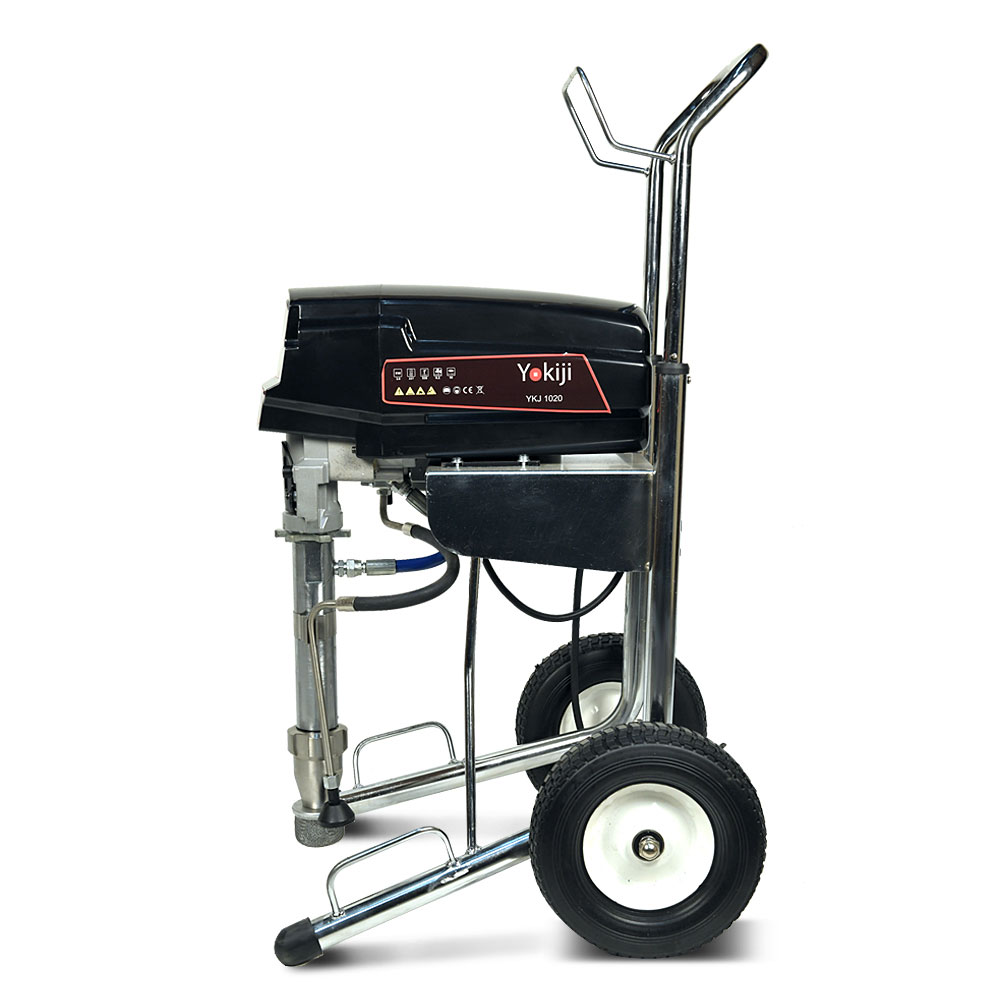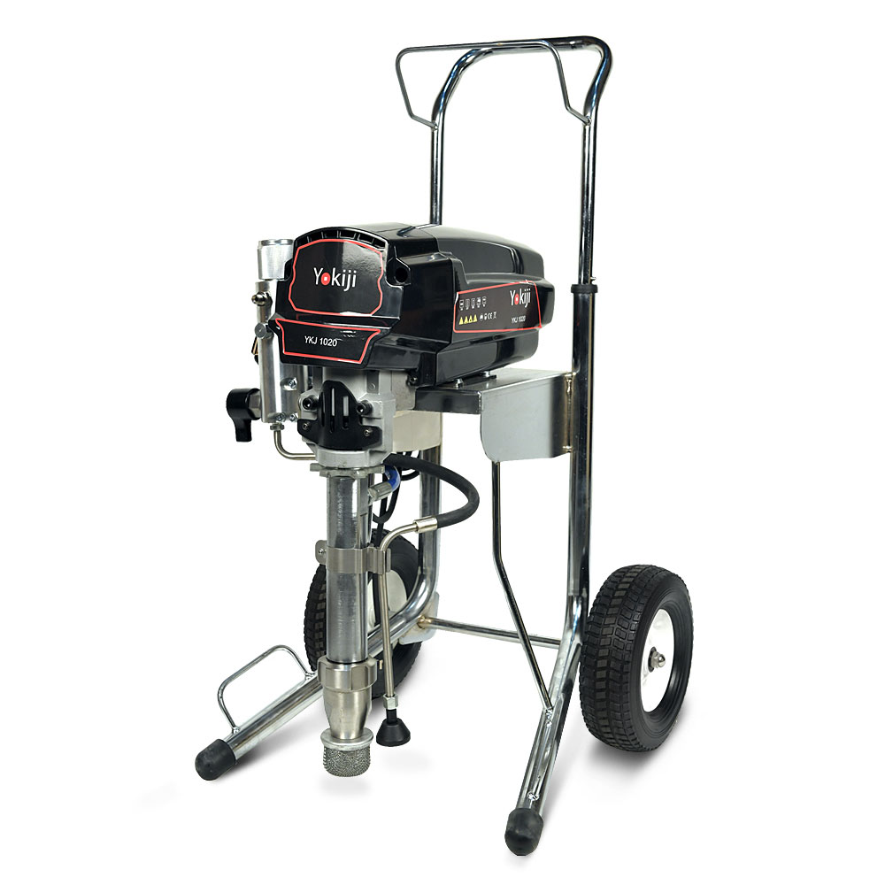 YOKIJI YKJ 1020.1 – окрасочный аппарат для распыления материалов низкой, средней и высокой вязкости; оснащен выходами на 2 малярных поста. Аппарат имеет высокую скоростью подачи материала - производительность до 6,2 л/мин., при этом более компактный размер и меньший вес по сравнению с аналогичными агрегатами. Подключение шланга возможно до 90 метров при работе материалами низкой и средней вязкости на 1 пост и до 45 метров на 2 поста. Мощность 3 кВт и поддерживаемое давление 227 Бар обеспечивают высокое качество покрытия при нанесении интерьерных красок, вязких эмалей, огнезащитных покрытий, грунтов. Работает от розетки 220 В.