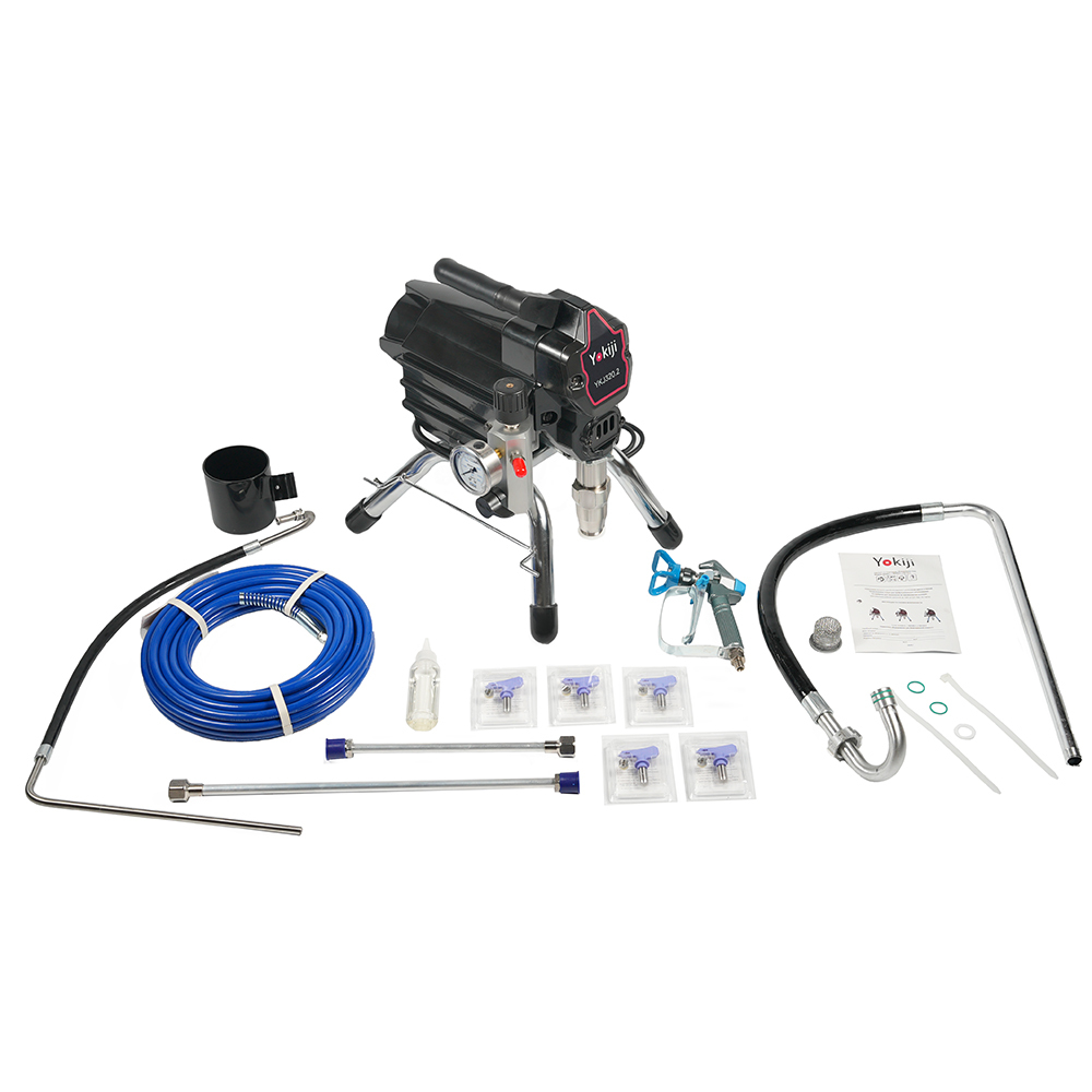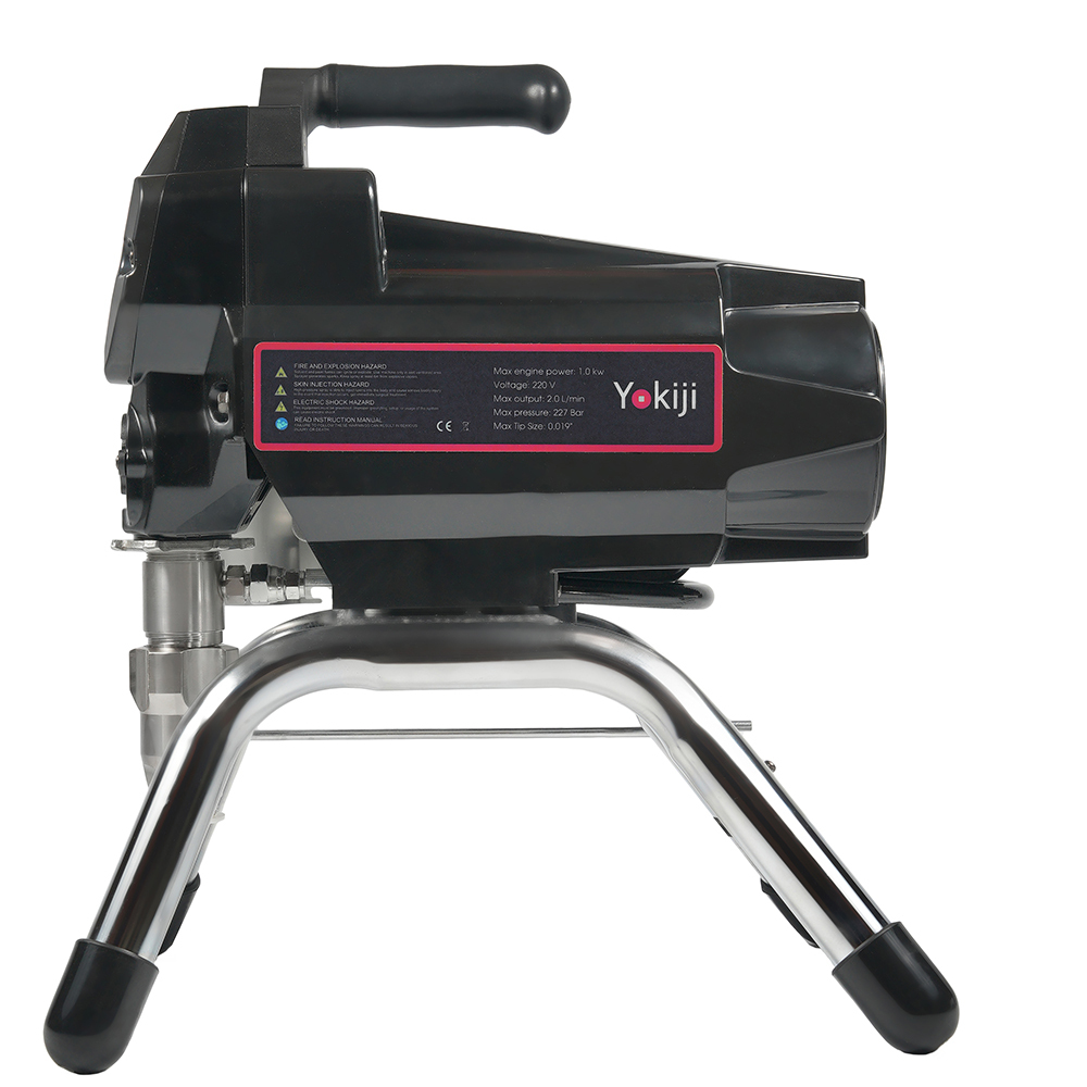 YOKIJI YKJ 320.2 – компактный легкий поршневой окрасочный аппарат с фильтром материала, электронной регулировкой давления и бесщеточным мотором. Ориентирован на выполнение интерьерных отделочных работ: нанесения грунтов, красок, эмалей на стены, потолки; также может применяться при окраске фасадов зданий, металлических и деревянных конструкций. Аппарат работает по принципу безвоздушного распыления под высоким давлением: материал подается от окрасочного агрегата через краскопульт, оснащенный соплом в соответствии с распыляемым материалом.