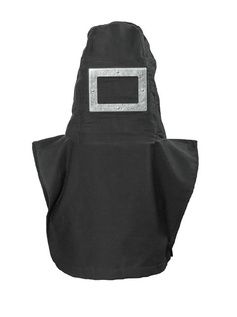 Шлем состоит из плотной накидки с прикрепленной к ней металлической смотровой рамкой. Накидка надевается на строительную каску, специально переоборудованную для этих целей.